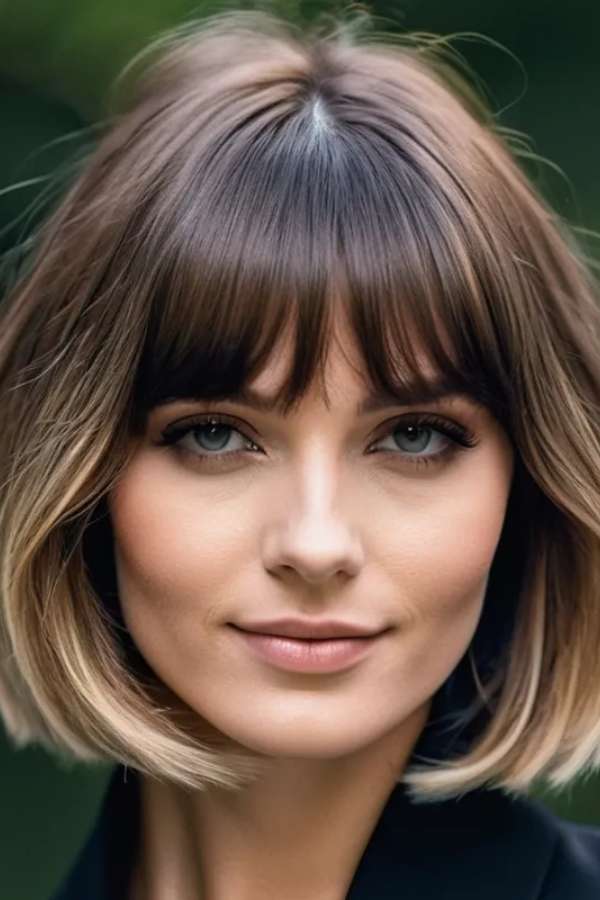 If you prefer less maintenance, subtle bangs still provide shape without daily styling.